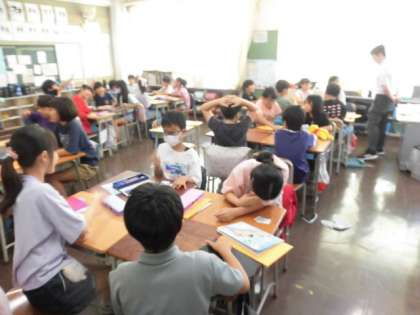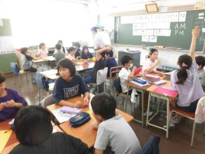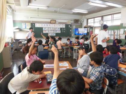 分かった人は嬉しそうに手を挙げています。子どもたちは楽しそうに学習に取り組んでいます。
