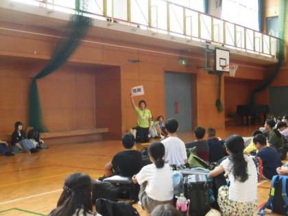 6年生は今日から日光林間学園です。体育館に集合です。大きな荷物をもって、子どもたちはとてもいい表情で集まってきました。