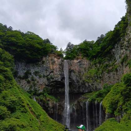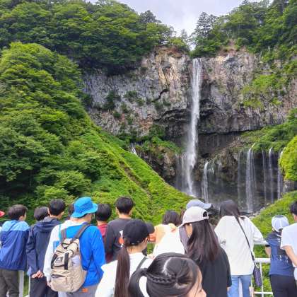 本日の水量は少ないようですが、それでも大迫力の滝に、みんな笑顔です。