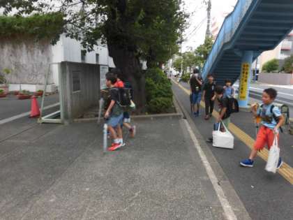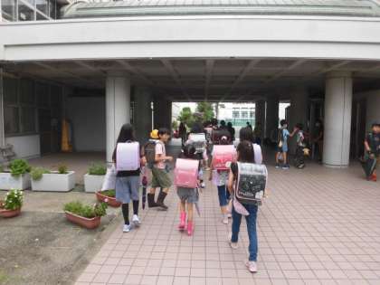 学期初めで子どもたちはたくさんの荷物をもって登校してきます。