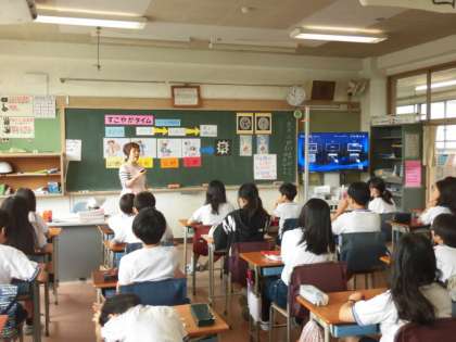 6年生の教室では「すこやかタイム」が行われていました。養護の先生による健康に関しての授業です。