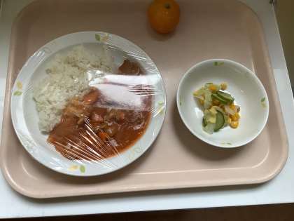 牛乳・ハヤシライス・コーンサラダ・冷凍みかん