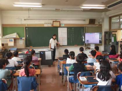 今日の5時間目は、3年生だけが残り研究授業を行いました。教育委員会の先生にいらしていただき、授業を見ていただきました。