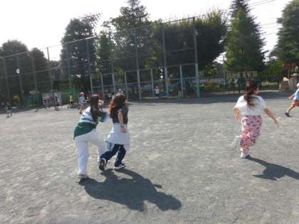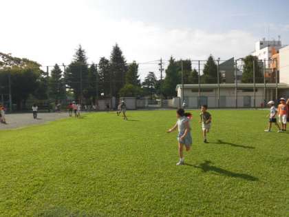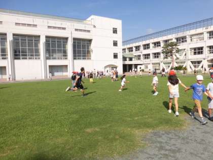 子どもたちが校庭を走り回っています。校庭を走る子どもたちはとてもうれしそうです。