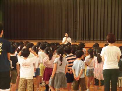 早く体育館に入ったいた5年生と4年生が座って静かに他の学年が入ってくるのを待っていました。そのおかげで、入ってくる学年も静かに準備をすることができました。