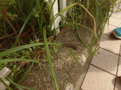 2年生が校庭側の校長室の前で、幼虫を見つけました。とても大きな幼虫です。なんの幼虫でしょう。