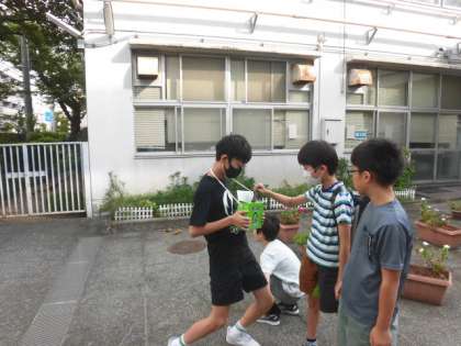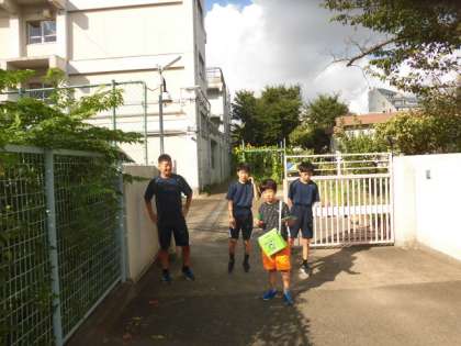 今日も三宿中学校のお兄さんお姉さんが来てくれ、池尻小学校の代表委員会の人たちとあいさつ運動を行いました。代表委員会は、緑の羽根募金も兼ねています。