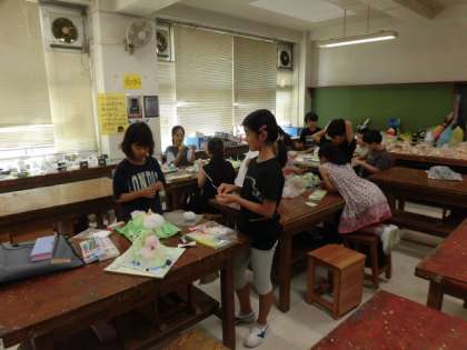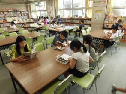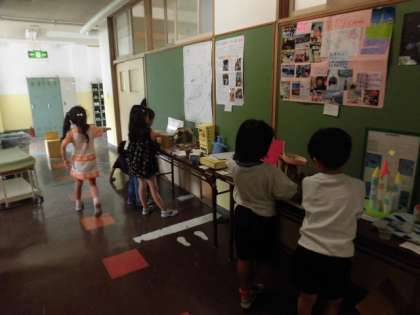 子どもたちは、校舎内でいろいろなことをしています。自由研究の作品をながめている人、図書室で静かに本を読んでいる人、図工室に行き、作品作りの続きをする人、もちろん、自分の教室で静かに過ごしている人もいます。