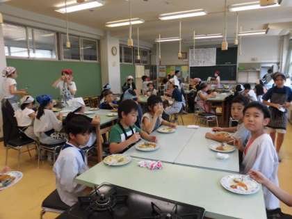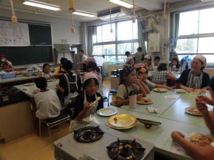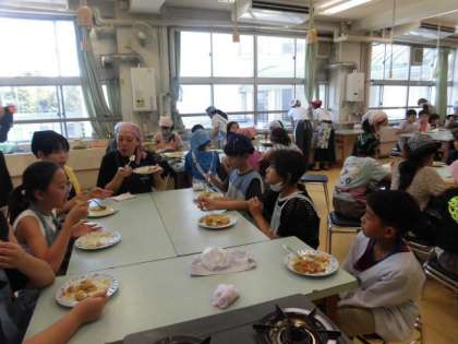 家庭科室に再度入ると、「美味しいよ。」と、たくさんの人たちがこえをかけてくてました。みんなとてもいい顔でカレーライスを食べています。みんなで作ったカレーライスをみんなで食べているから美味しいのでしょう。とてもいいいい表情でカレーライスを食べている子どもたちを見ていたら、こちらが幸せな気持ちになりました。川場移動教室が楽しみです。今日のようにみんなで協力して、すてきな川場移動教室にしましょう。