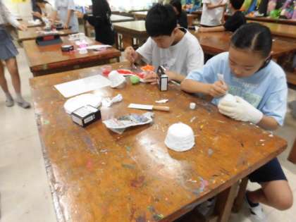 紙粘土を使って、ウォーターラグーンを作っています。完成した人も出てきているようです。展覧会に出展する作品です。ていねいに仕上げている人もたくさんいます。