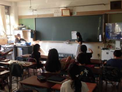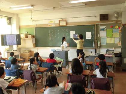 集会委員の人が、放送で数字をよみあげます。それを各クラスのカードに照らし合わせます。カードにある数字がよまれると、歓声があがっていました。