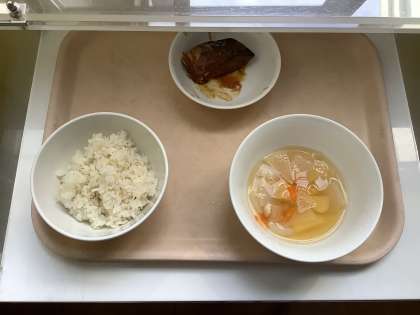 今日は、朝から鯖の味噌煮のいい匂いが漂っていました。朝から煮たのでとても柔らかく骨までよく食べていました。