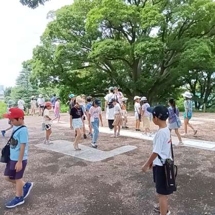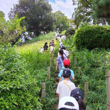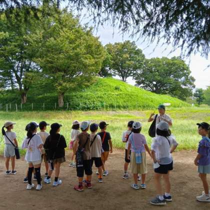 野毛大塚古墳に着きました。世田谷区にこんなに大きな古墳があるのですね。びっくりです。子どもたちは、棺の中の配置図に興味津々でした。