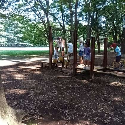 広い芝生を走り回る人、遊具で遊ぶ人。みんな楽しそうです。