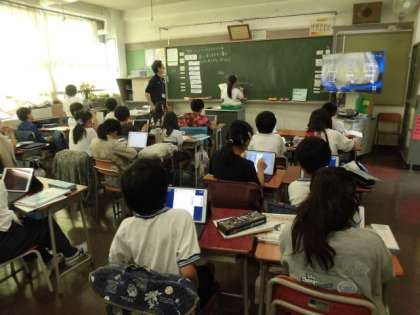 子どもたちが前に出てきて説明をしたり、先生からの解説を聞いたりしています。