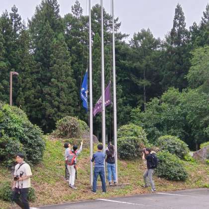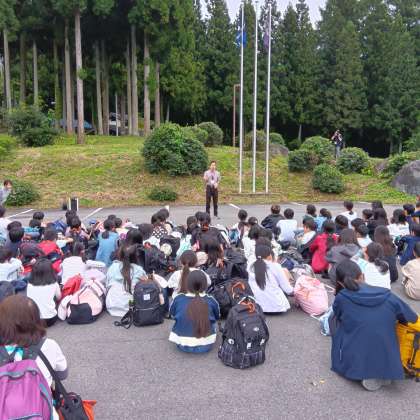開室式です。なかのビレジには、三宿小学校と一緒に泊まります。開室式や閉室式どは、一緒に行います。