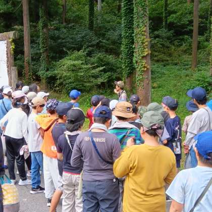 植林された杉の木かたくさん生えています。植林についての説明をしてもらいました。