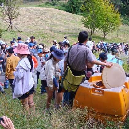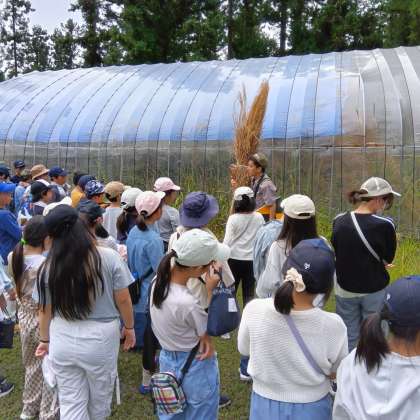 炭焼き小屋では、できた炭の匂いをかがせてもらいました。