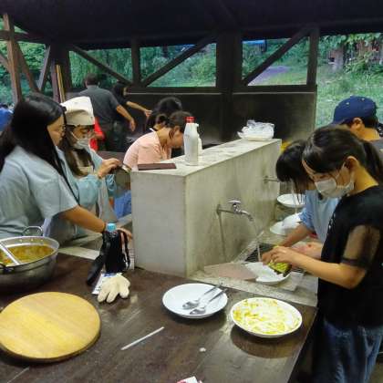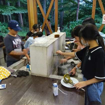 カレーライスを食べ終わり、使った食器やなべなどの片付けです。