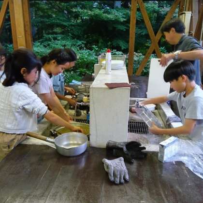 川場の水はとても冷たいです。子どもたちは、一生懸命片付けをしています。