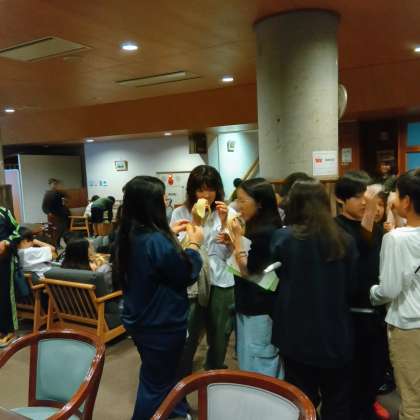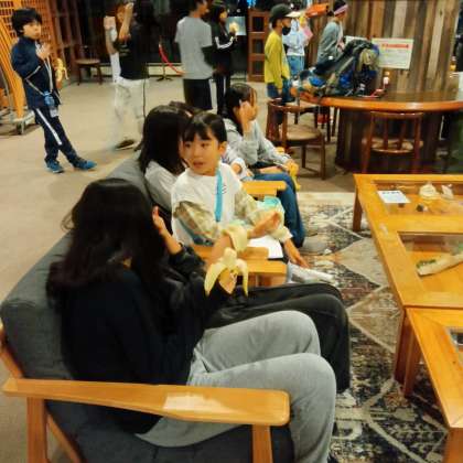 キャンプファイヤーのあとに、夜食としてバナナを食べました。カレーライスを食べた時間がとても早かったので、子どもたちは、少しおなかがすいたようで、とても喜んで食べていました。