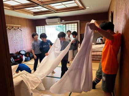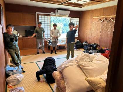 カードゲームをしている部屋、みんなで楽しく雑談をしている班、朝できなかった片付けをしている班などいろいろです。