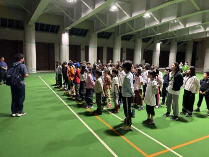 屋根付き広場に集合し、ナイトハイクに向かいます。