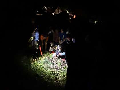 ビレジの外に出ました。少し歩くと、あたりは真っ暗です。少しずつ、目が慣れてきました。