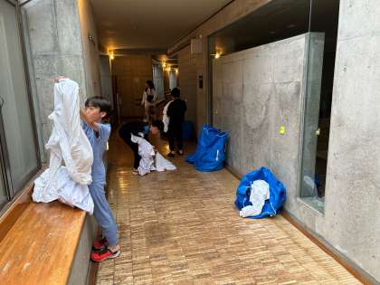 自分の朝の支度とともに、枕カバーやシーツの片付けをしています。