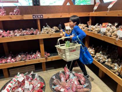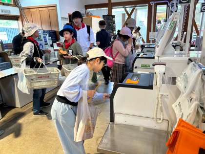 まず、お土産タイムです。子どもたちは、おうちの人たちのために、いろいろ考えて買い物をしています。