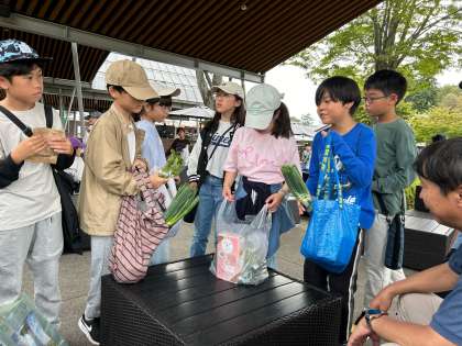 子どもたちが買って帰る野菜、夕食の材料にしてあげてください。子どもたちが考えに考えたお土産です。