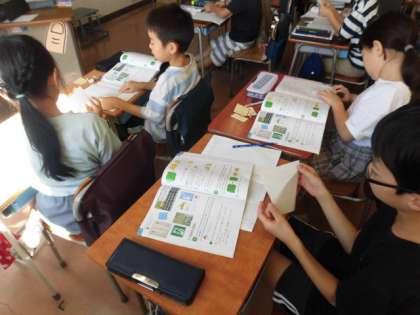 実際に作業をとおして、子どもたちは形の認識を深めています。
