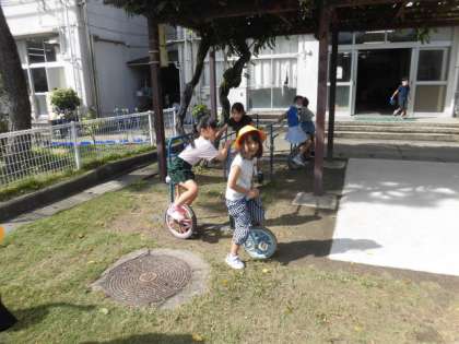 昼休みになりました。お日さまが出て、気持ちのよい青空です。子どもたちが元気に遊んでいます。