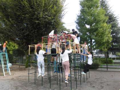 ジャングルジムで大人が遊んでいるように見えました。近づいてみると、6年生でした。とても楽しそうに遊んでいます。