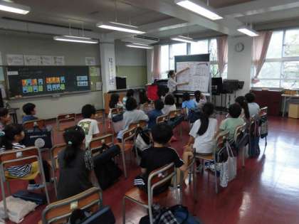 2年生の授業は音楽です。鍵盤ハーモニカの学習です。