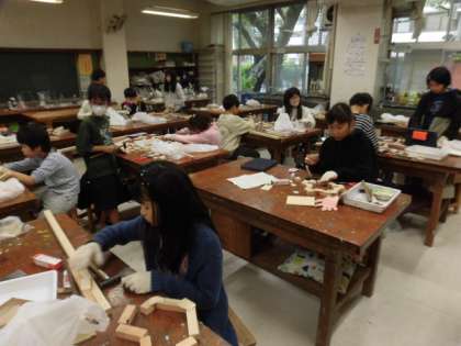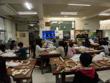木の板を切り、それを釘で連結させ枠を作ります。くぎを支え金づちで打ち付けます。子どもたちは楽しそうに作業をしています。「校長先生、見て!」そんな声をたくさんもらいます。