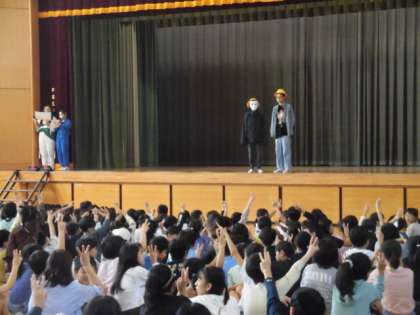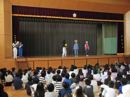 出てきた人を10秒間で覚えます。次に出てきたとき、前との違いを考えます。意外と見落としてしまいます。わたしは、よく見ていてもわからないことがたくさんありました。子どもたちは、みんあ楽しそうに考えていました。集会委員会の人たち、ありがとうございました。