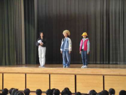 集会の後には、区の海外派遣として、オーストラリアとオーストリアに1週間勉強に行く5年生の紹介をしました。