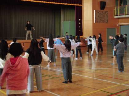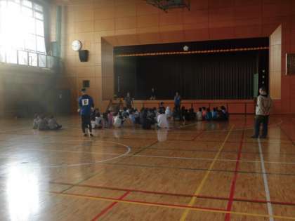 体育館に集まり、朝会です。