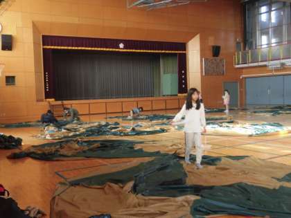 楽しかった学校での宿泊、片付けも頑張っています。