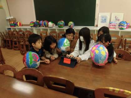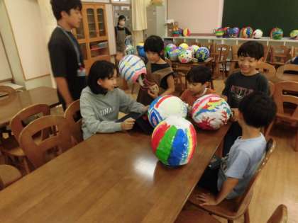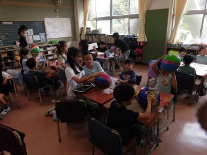 1年生の教室に6年生が来て、展覧会に出展する作品について、1年生にアンケートをしていました。展覧会で6年生は子どもガイドとして、いらしたお客さんに各学年の作品の見どころを案内します。作り方や苦労したところ、見てほしいところなど、1年生にいろいろ聞いています。聞いている6年生の表情もすてきですし、自分の作品について話をする1年生の表情もとてもかわいらしいです。