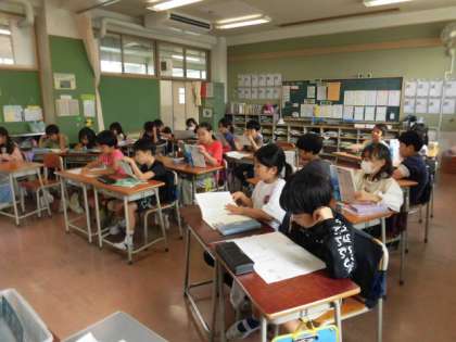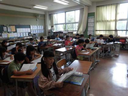 わたしが教室をのぞいた時、子どもたちは各自で音読をしていました。わたしが入ったのも気づかずに音読をしています。すごい集中力です。とても一生懸命に学習に取り組んでいる3年生です。
