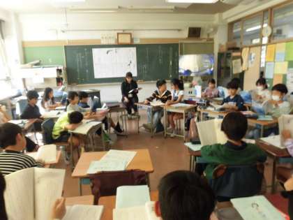 クラスみんなで、静かに友達が音読するのを聞いています。