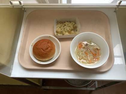 今日は子供たちにポテトクリーム焼きが人気でした。食べやすい味だったのでぶどうパンと一緒によく食べていました。