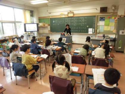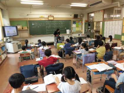 1年生の授業は算数です。10のまとまりを作る学習です。