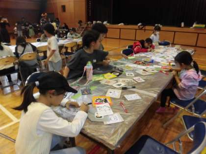 プラバンづくりでは、みんな好きなイラストを描いていました。