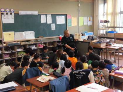 2年生の教室では読み聞かせをしていました。