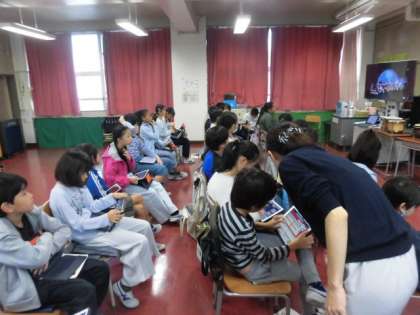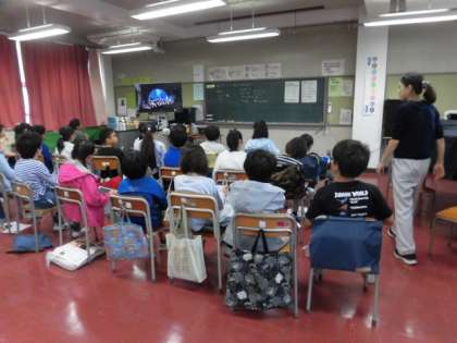 4年生の授業は音楽です。鑑賞の学習をしています。