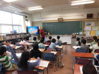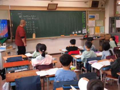 4の段の学習をしています。かける数が一つずつ上がっています。答えはどのように変わっていくのでしょう。子どもたちは、考えています。