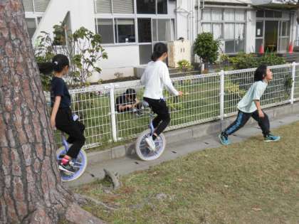 わたしは3年生と一輪車で遊びました。3年生の上達の早さがすごく、びっくりです。
